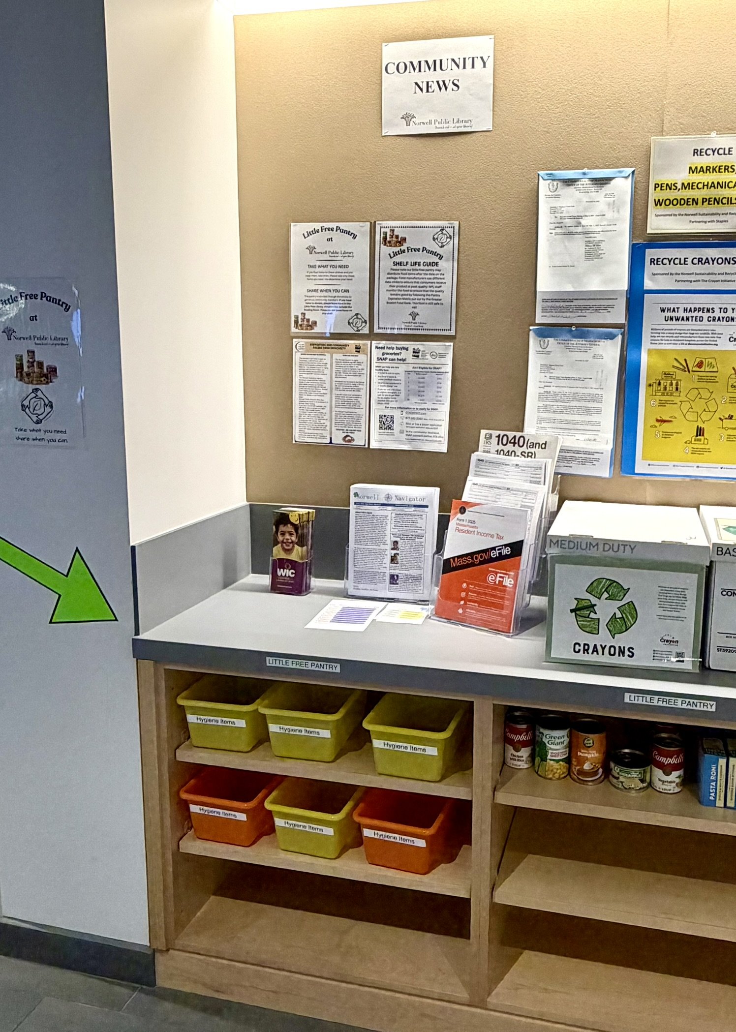This week, library director Rachel Breen announced the launch of a Little Free Pantry by the library’s Community Bulletin Board to help support the Norwell community and beyond.